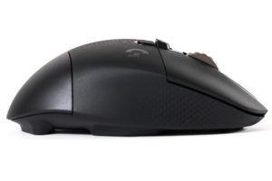 G604は右利き用マウスで、左右非対称の独特な形状で、仕様上の寸法は130×80mmと大きめ。